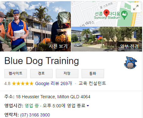 내가 화이트 카드를 취득한 교육 기관은 바로 이곳 Milton지역에 위치한 Blue Dog Training!
