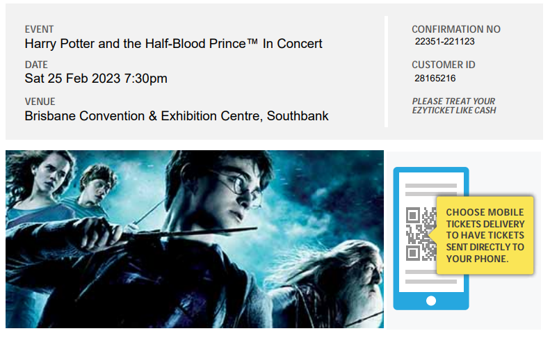 브리즈번에서 열린 해리포터 6편 혼혈왕자 공연은 2023년 2월 25일 토요일 단 하루만 진행 되었으며 나는 7:30pm공연으로 예약하였다.