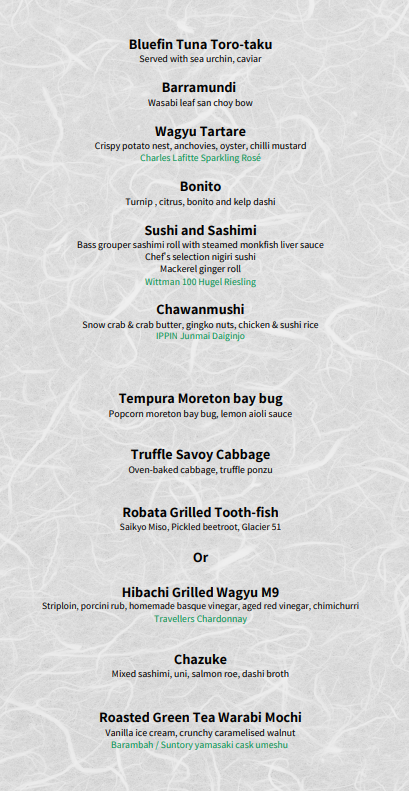 세트메뉴라 쓰고 호주로 치자면 banquet메뉴 일본식으로 이야기하자면 약간의 오마카세 느낌이 나지만 셰프가 직접 눈앞에서 만들어주고 하는 건 아니기에 세트메뉴 혹은 뱅큇 메뉴가 좀 더 맞는 표현인 것 같다.