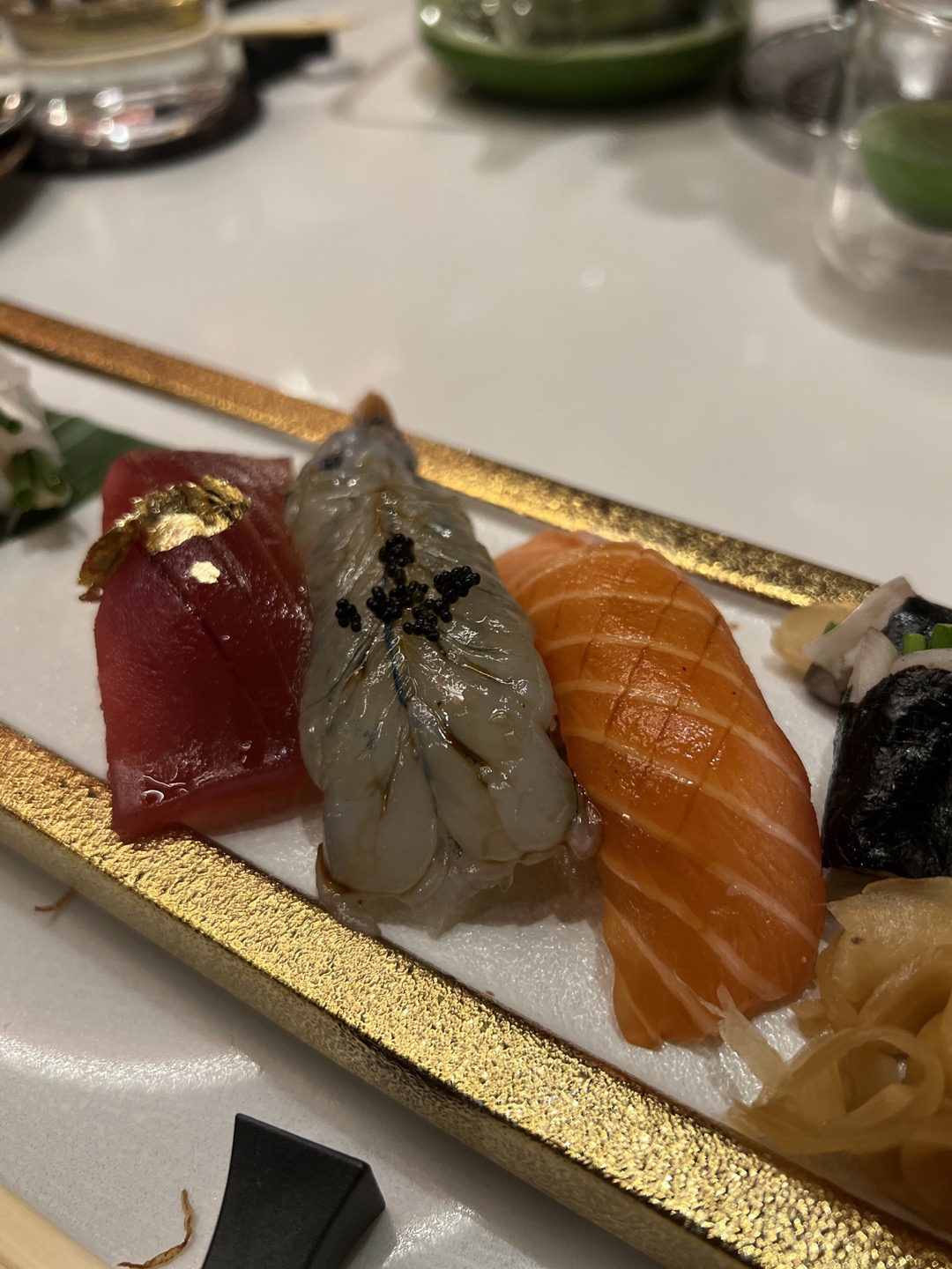 참치 초밥도 칼집을 내고 위에 간장소스를 바르는 것까진 똑같았는데 식용 금가루를 조금 올린 것에 확실히 돈 쓰는 보람이 느껴지는 맛이었다.